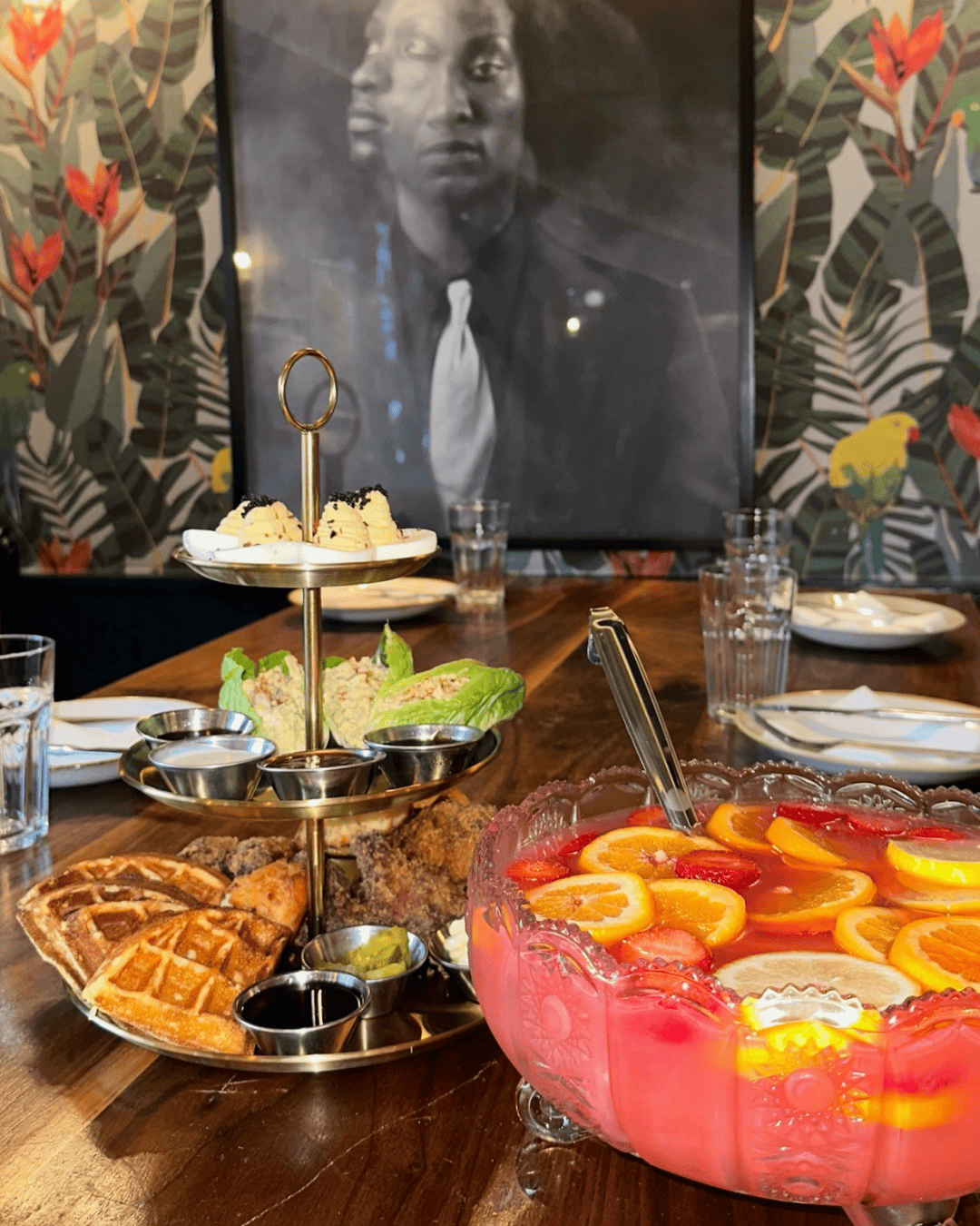 Ask for the Boogie Down Bird Tower and Overtown Sunset Punch, our Thursday night special. The fried chicken tower stacks smokey wings, Southern biscuits and waffles, chicken salad, and deviled eggs with plenty of dipping sauces. Pair it with the Overtown Sunset Punch, a rum punch bowl mixed with fresh orange, pineapple, and cranberry.