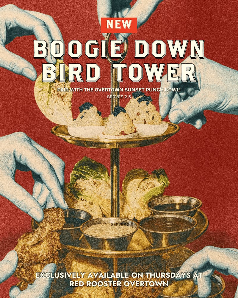 NEW! Ask for the Boogie Down Bird Tower and Overtown Sunset Punch, our Thursday night special. The fried chicken tower stacks smokey wings, Southern biscuits and waffles, chicken salad, and deviled eggs with plenty of dipping sauces. Pair it with the Overtown Sunset Punch, a rum punch bowl mixed with fresh orange, pineapple, and cranberry.