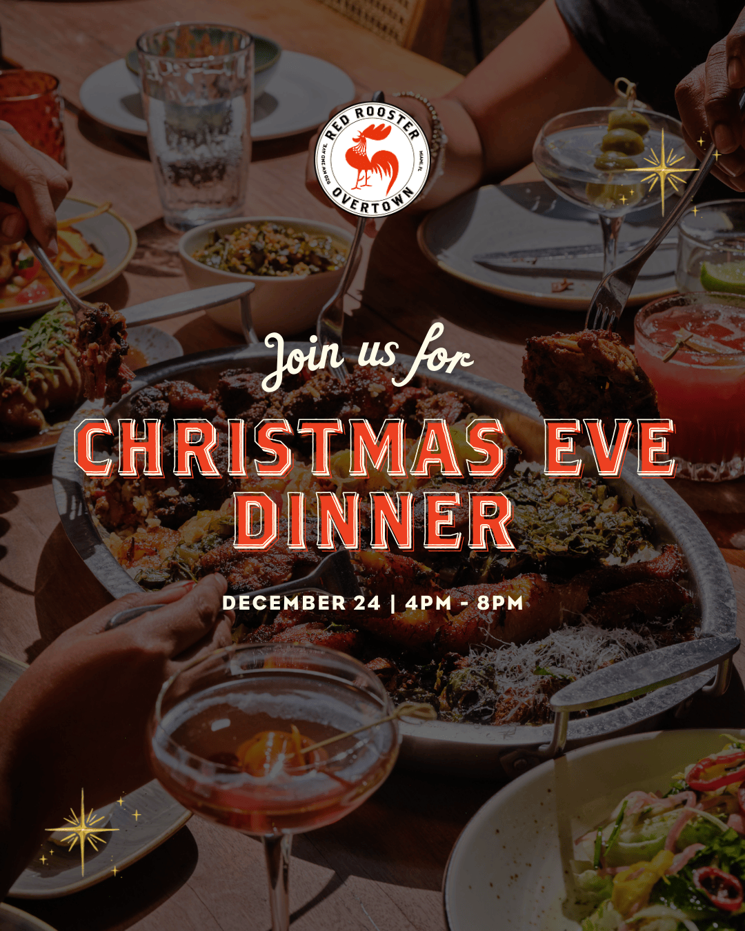 Gather with family and friends for a Christmas Eve dinner filled with soul, flavor, and holiday warmth. We’re serving our a la carte menu featuring Rooster classics alongside festive seasonal favorites, plus Miami-inspired holiday cocktails to toast the night.